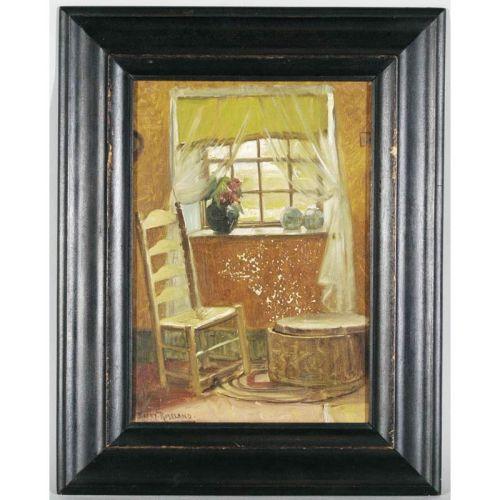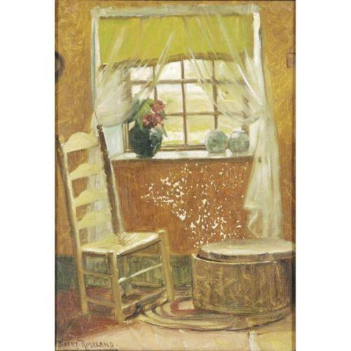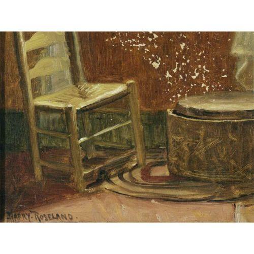 1 HARRY ROSELAND At The Window 14"x 10" oil on canvas signed lower left CONDITION REPORT: flaking in center. PACKING AND SHIPPING (excluding insurance) by Fairfield Auction to points within the Continental U.S.A. and Canada (all other international must be handled by 3rd party shipper) $30.