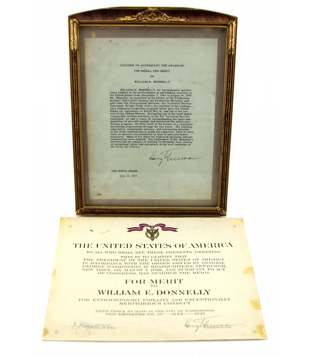 HARRY TRUMAN SIGNED MEDAL FOR MERIT CERTIFICATE Country: US