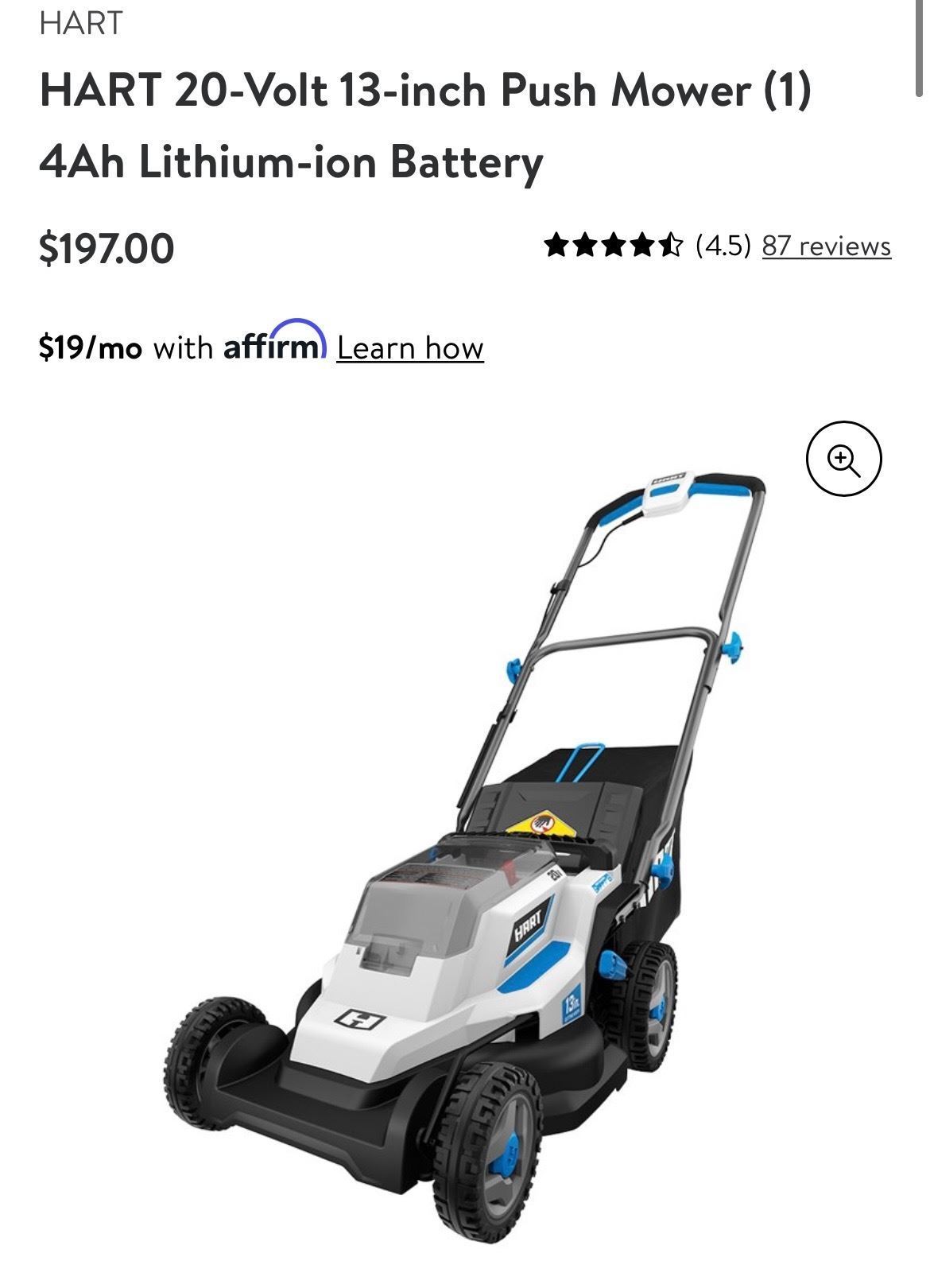 HART 20-Volt 13-inch Push Mower (1) 4Ah Lithium-ion Battery