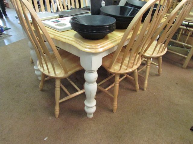 HARVEST / BLOCK STYLE TABLE - WITH LEAF - NEW - SOLID HARDWOOD - NATURAL TOP WITH BUTTERMILK ACCENT