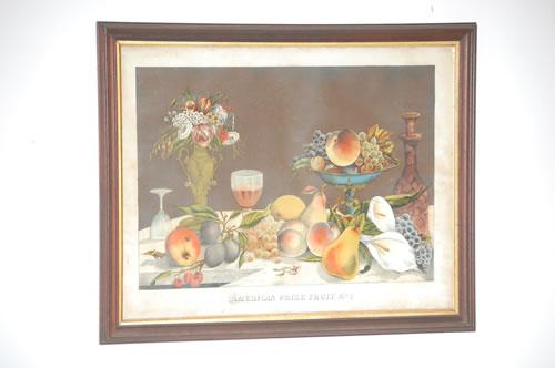 HASKELL & ALLEN COLORED LITHOGRAPH - 19TH CENT. COLORED LITHO "AMERICAN PRIZE FRUIT NO. 1" BY HASKELL & ALLEN 14 HANOVER ST. BOSTON MA IN A WALNUT FRAME (21 1/2" X 27 1/2") - STAINS, SPOTTING, IMPERFECTIONS