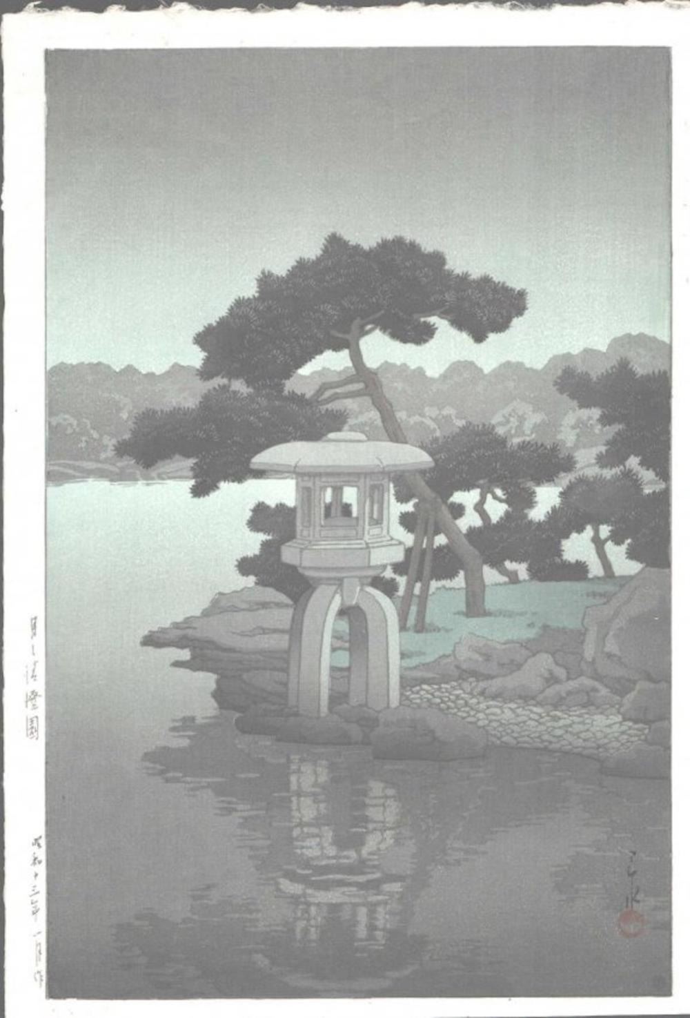 HASUI ""LIGHTHOUSE ON A LAKE" MEASURES AT 15 X 10 1/4, FINE CONDITION