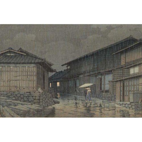 HASUI WOODBLOCK PRINT Rain at Nitsusaka, Toka