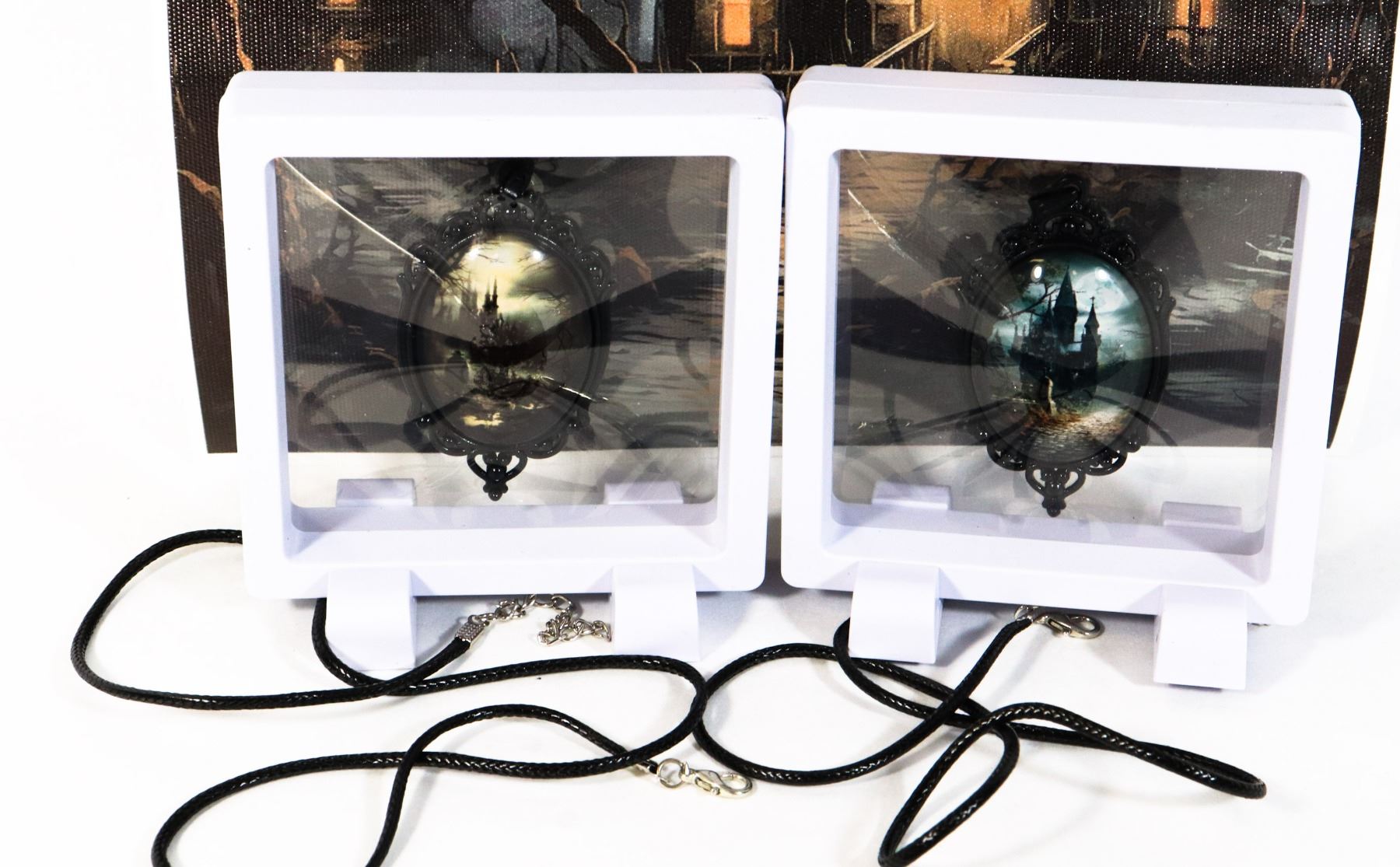 POSTER 8" X 12" COMES IN PLASTIC TUBE. COMES WITH 2 SIMILAR PENDANT NECKLACE IN FLOATING DISPLAY CASE WITH STANDS