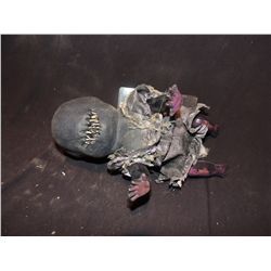 This is made from an altered toy with a full head latex appliance on it, and distressed clothing. Still works if you replace the batteries.