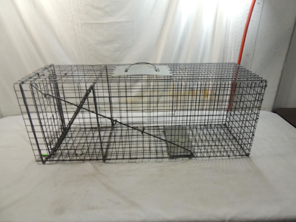 HAVAHART LIVE TRAP, ANIMAL TRAP, LIVE ANIMAL TRAP, SMALL/MEDIUM ANIMAL TRAP AS SHOWN SEE PHOTO FOR MORE DETAILS.