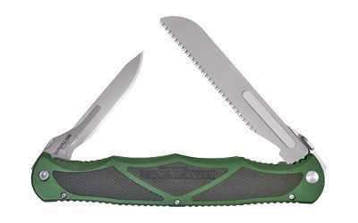 Havalon, Hydra, Double Folding Knife, 7 Different Blade Styles, 4 Piranta Blades (60A, 70A, 22XT, 22) and 3 Baracuta Blades (127XT Fillet, 115XT Hunter, 115SW Bone Saw), Green Aluminum Hangle with Black Grip Inserts, OAL 5 7/8", Includes 12 Replacement Blades and Zipper Carrying Case