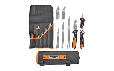 Havalon, Talon Hunt, Interchangeable Fixed Blades, 3.5" Gut Hook Combo, 5" Fillet, 3.5" Semi-serrated, Black Handle with Orange Rubber Inlay, Includes 4 Blades and Nylon Roll Pack