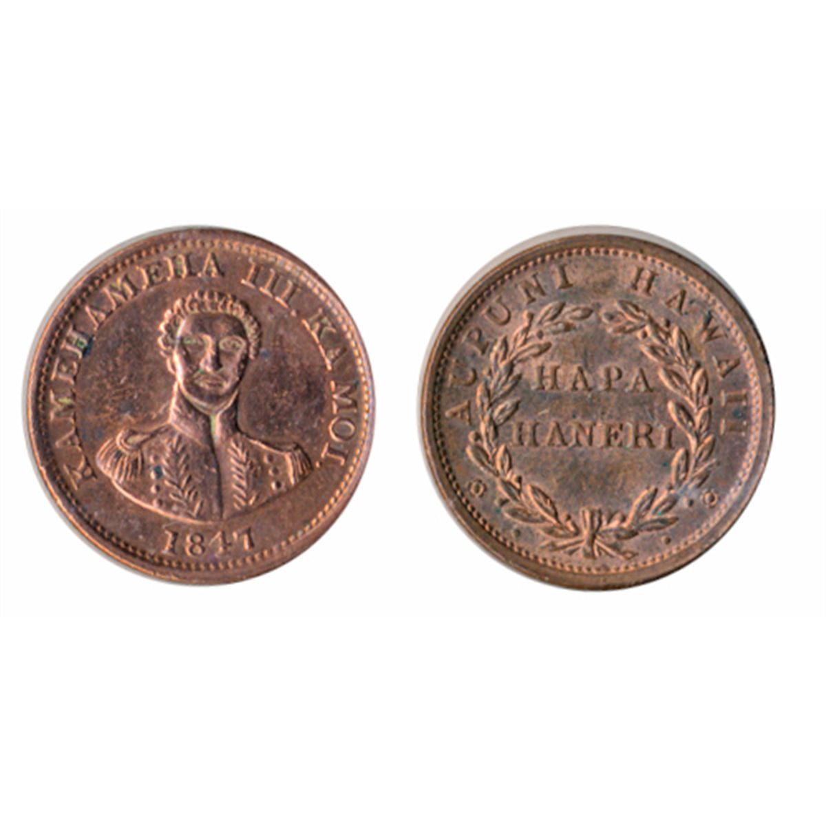 HAWAII. Cent. 1847. The reverse is AU, with 40% original luster. The obverse is harshly polished, resulting in a net grade of Very Fine.