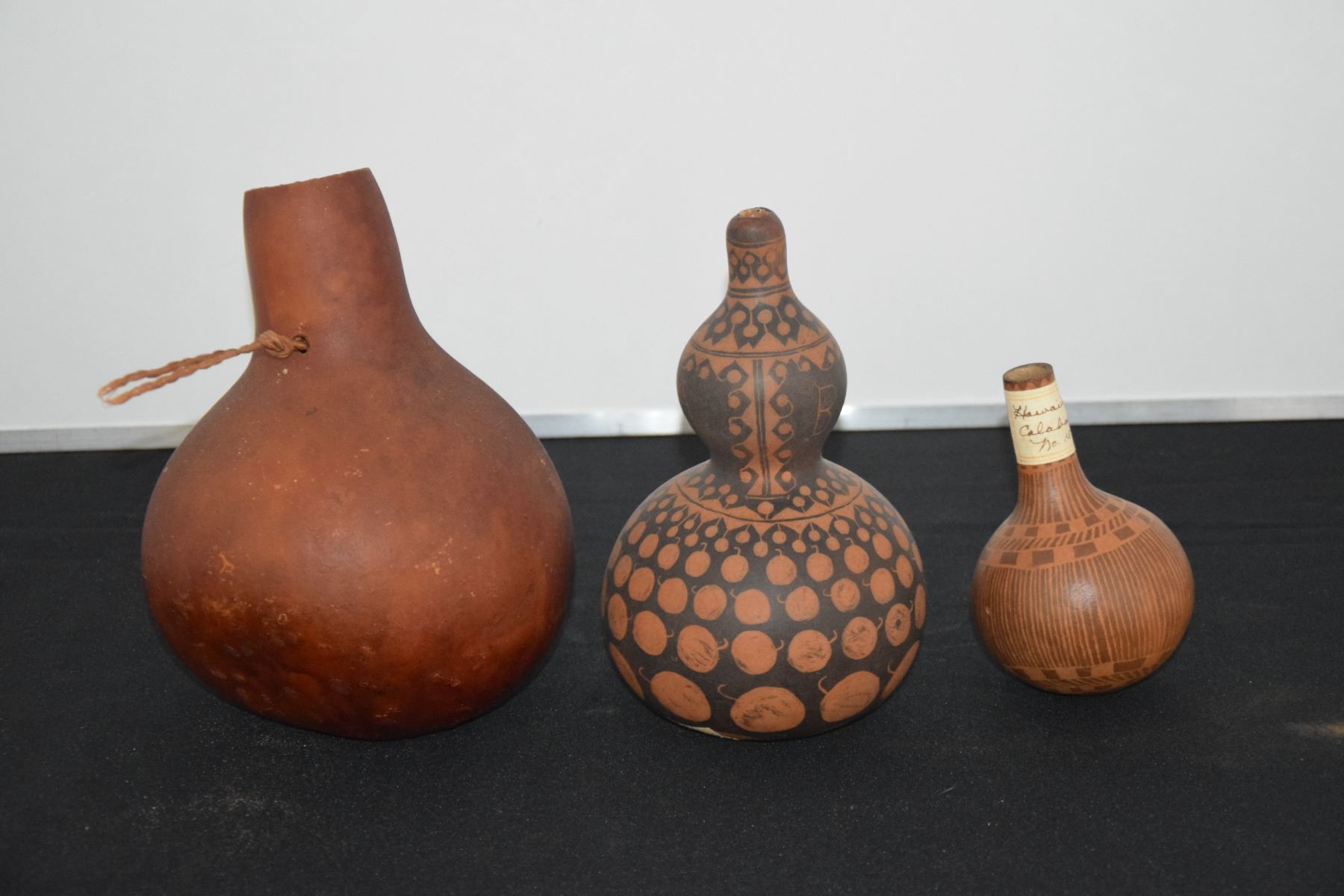 HAWAII EXTINCT GOURDS (2 PAINTED WITH LABELS FROM EARLY 1900 SAN FRANCISCO EXHIBIT) (3 PCS)
