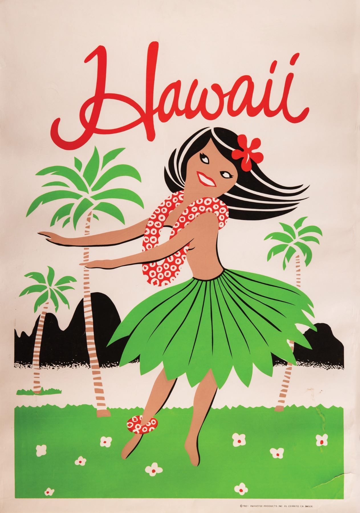 "HAWAII" HULA GIRL SILKSCREEN DISPLAY POSTER.