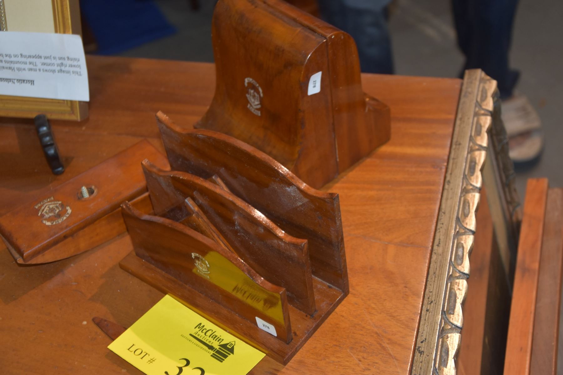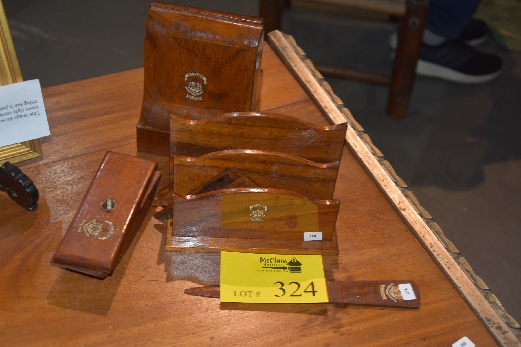 HAWAIIAN KOA DESK TOP ACCESSORIES W/COAT OF ARMS (9 PCS)