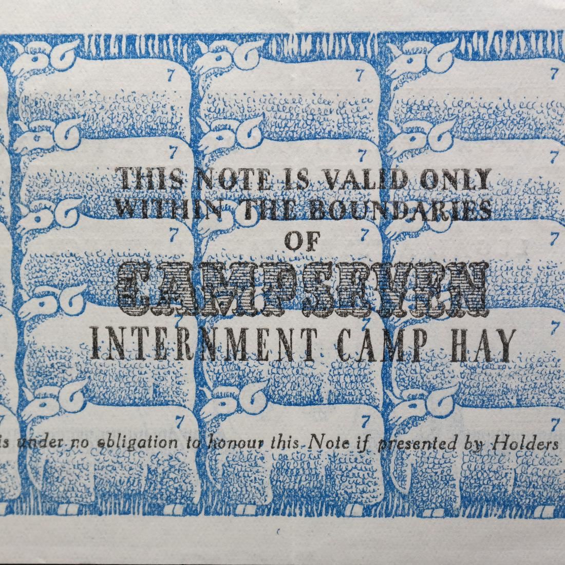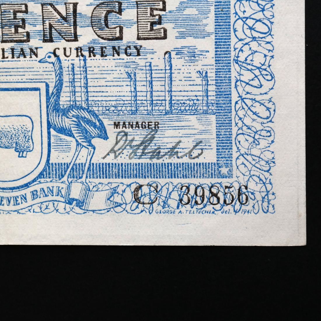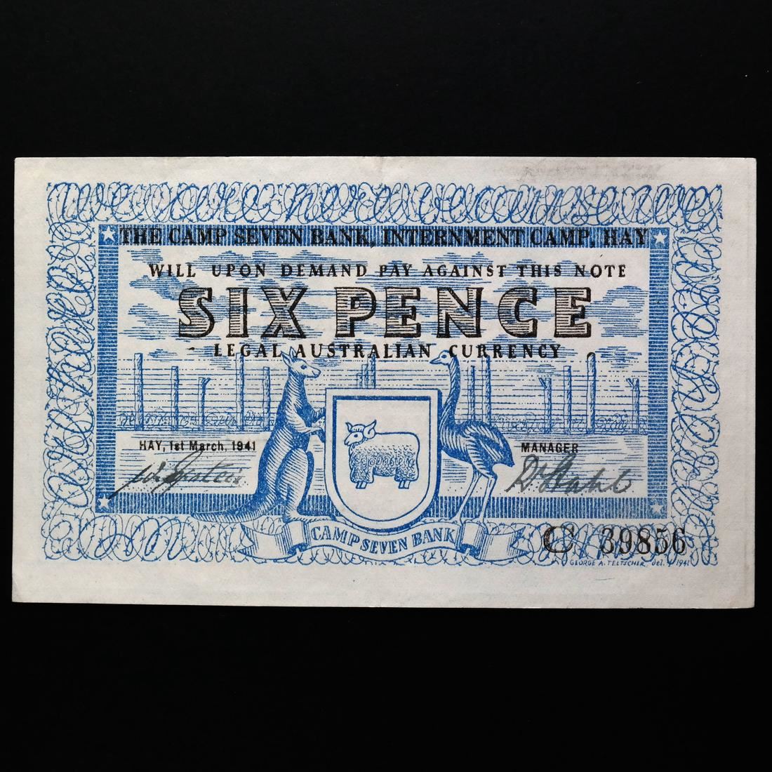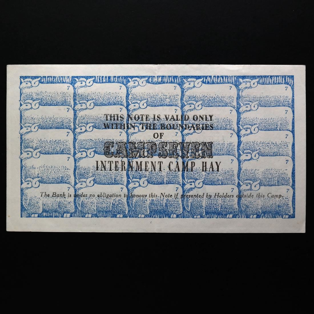 Camp Seven Bank, dated 1st March 1941, signed Epstein/Stahl, serial #C39856, SB-551b, light vertical center fold, Extremely Fine condition.