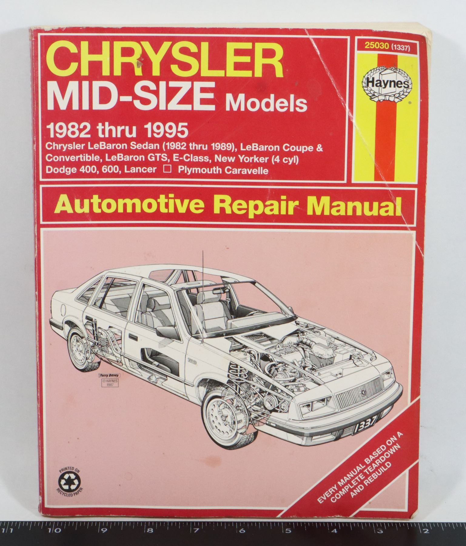 CHRYSLER MID-SIZE MODELS 1982 THRU 1995. CHRYSLER LEBARON SEDAN, (1982 THRU 1989), LEBARON COUPE & CONVERTIBLE, LEBARON GTS, E-CLASS, NEW YORKER (4CYL), DODGE 400, 600, LANCER, PLYMOUTH CARAVELLE