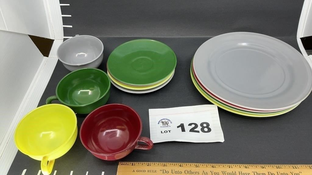 HAZEL ATLAS PLATONITE CUPS SAUCERS PLATES. 4 each