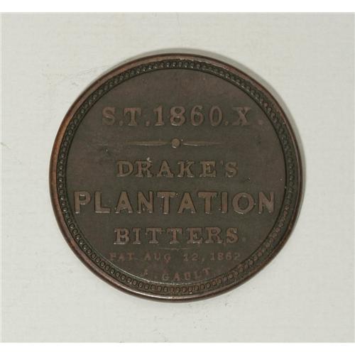 <B>HB-101 EP-42 3¢ Drake's Plantation Bitters Fine.</B></I> Well worn but problem free. This piece has clearly circulated for an extended period of time. It has as much actual wear as we've ever seen on a piece of Encased Postage. It's held up amazingly well, with a problem-free case, a mica that has surface marks only, without cracks or breaks and a slightly wrinkly, toned-down stamp.<BR><BR><b>Shipping:</b> Coins & Currency (<a target="_blank" href="http://www.heritageauctions.com/common/shipping.php">view shipping information</a>)