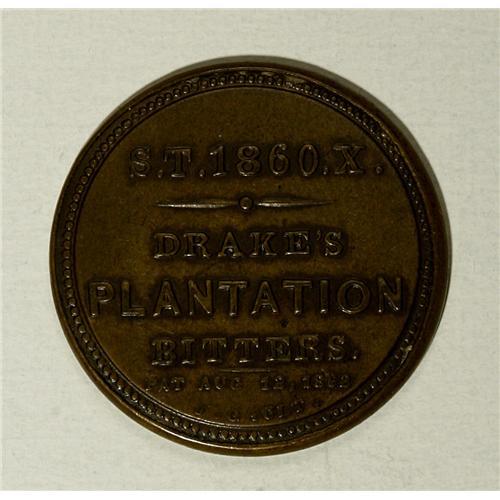 <B>HB-101 EP-42 3¢ Drake's Plantation Bitters About New.</B></I> The case is a glossy, medium-brown color and absolutely problem free. The stamp is fully bright and the mica perfect save for the most minimal natural as-made flaws. A very attractive example of this popular issue with its enigmatic cryptogram. No definitive answer has ever emerged as to the meaning of the "S.T. 1860. X." which appears on this encasement. Drake relied heavily upon the mystique of this inscription in all his advertising as well as on the label of his product, which was a rum-based bitters.<BR><BR><b>Shipping:</b> Coin/Currency (<a target="_blank" href="http://www.heritageauctions.com/common/shipping.php">view shipping information</a>)