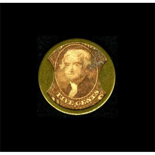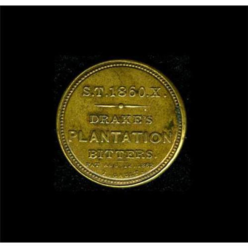 <B>HB-102 EP-74 5¢ Drake's Plantation Bitters About New.</B></I> A beautiful example for type, with a glossy, problem-free case, a reasonably bright stamp and a mica disturbed only by some crazing behind Jefferson's head. The typed flip indicates that the piece was purchased decades ago from Stack's for $6.50. <BR><I>From The Collection of Louis E. Eliasberg, Sr.</B></I><BR><BR><b>Shipping:</b> Coin/Currency (<a target="_blank" href="http://www.heritageauctions.com/common/shipping.php">view shipping information</a>)