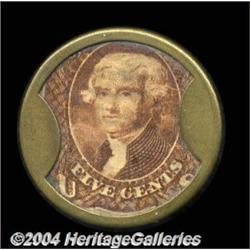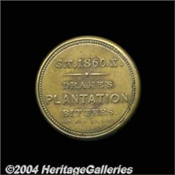 HB-102 EP-74 5c Drake's Plantation Bitters Choice About New. The glossy medium-brown case is extremely close to the uncirculated grade. The stamp is beautifully bright, and the mica is as close to perfect as these are ever found. An outstanding piece. <BR><BR><B>Important notice:</B> Heritage usually auctions material at the rate of 200-250 lots per hour. On some occasions eBay Live bid software or the Internet may not be able to keep up with the pace of the auction. We recommend placing a realistic absentee bid now as insurance to avoid disappointment. Occasionally the auctioneer may eliminate or reject an eBay Live bid, and the auctioneer may also reopen a lot after the close of the eBay live bidding (usually because we missed an audience bid), and may reject your bid even if it shows you as the winning bidder. By bidding via eBay Live, you agree that Heritage may award the lot to another bidder at its sole discretion under the circumstances described above or any other reasonable circumstances. Since eBay bids are not shown to us until we open the lot on the floor, we treat those bids just like floor bids. In most cases the floor responds before the eBay bid is presented to us, due to Internet lag time, so for consistency we have made it a policy that floor bids are always considered first over tie eBay live bids. Also please note that all Heritage lots purchased through eBay Live carry a 20% Buyer's Premium. Please make sure you read the Terms and Conditions before you bid. <BR><BR><B>IMPORTANT ANNOUNCEMENT ABOUT RESERVES:</B> Heritage now divulges all reserves on its web site 7 days before every auction. If you want to know whether the reserve on this lot has been met, and if not, what the reserve amount is, please visit this lot page on the HeritageCoin.com web site, or email: bid@HeritageGalleries.com