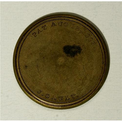 <B>HB-132 EP-79 5¢ J. Gault Ribbed Frame About New.</B></I> A gorgeous example of this considerably scarcer and popular variety. The mica and stamp are as perfect as they ever come, and the case shows virtually no wear but has one minor stain near its center.<BR><BR><b>Shipping:</b> Coin/Currency (<a target="_blank" href="http://www.heritageauctions.com/common/shipping.php">view shipping information</a>)