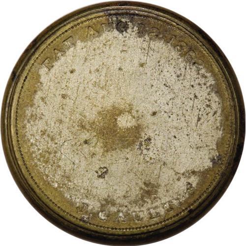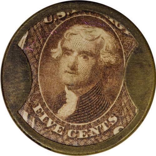 <B>HB-132 EP-79 Scott-96a Reed-JG05 5¢ J. Gault Ribbed Frame About New.<BR>Numerical grade: 75case.75stamp.75mica. = 225</B></I> A handsome example of this basic Ribbed Frame type. The back of the case has about 80% of its silvering, and it is defect free. The stamp has nearly full color and is quite well centered, and the mica shows only the most minor of imperfections.<BR><I>From The Frederick Mayer Collection</B></I><BR><BR><b>Shipping:</b> Coins & Currency (<a target="_blank" href="http://www.heritageauctions.com/common/shipping.php">view shipping information</a>)