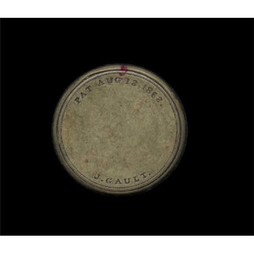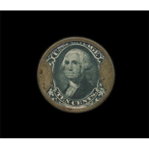 <B>HB-133 EP-116 10¢ J. Gault Choice Extremely Fine.</B></I> A high-end example of the most common Ten Cent Encased Postage. The case is a lovely, even light brass color, the stamp is fully bright and the mica is essentially perfect. There is not a trace of a problem with this ideal piece.