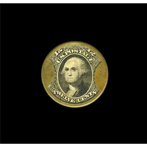 <B>HB-135 EP-148 12¢ J. Gault Choice Extremely Fine.</B></I> The case is a beautiful, even, medium brown, the stamp is bright and perfectly centered, and the mica is essentially perfect. It's tightly, evenly and perfectly closed all the way around, allowing for not the slightest suspicion of this piece's genuineness. A beautiful example of a scarce and popular denomination.