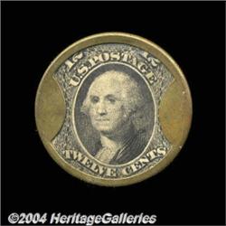 HB-135 EP-148 12c J. Gault Choice Extremely Fine. The case is a beautiful, even, medium brown, the stamp is bright and perfectly centered, and the mica is essentially perfect. It's tightly, evenly and perfectly closed all the way around, allowing for not the slightest suspicion of this piece's genuineness. A beautiful example of a scarce and popular denomination. <BR><BR><B>Important notice:</B> Heritage usually auctions material at the rate of 200-250 lots per hour. On some occasions eBay Live bid software or the Internet may not be able to keep up with the pace of the auction. We recommend placing a realistic absentee bid now as insurance to avoid disappointment. Occasionally the auctioneer may eliminate or reject an eBay Live bid, and the auctioneer may also reopen a lot after the close of the eBay live bidding (usually because we missed an audience bid), and may reject your bid even if it shows you as the winning bidder. By bidding via eBay Live, you agree that Heritage may award the lot to another bidder at its sole discretion under the circumstances described above or any other reasonable circumstances. Since eBay bids are not shown to us until we open the lot on the floor, we treat those bids just like floor bids. In most cases the floor responds before the eBay bid is presented to us, due to Internet lag time, so for consistency we have made it a policy that floor bids are always considered first over tie eBay live bids. Also please note that all Heritage lots purchased through eBay Live carry a 20% Buyer's Premium. Please make sure you read the Terms and Conditions before you bid. <BR><BR><B>IMPORTANT ANNOUNCEMENT ABOUT RESERVES:</B> Heritage now divulges all reserves on its web site 7 days before every auction. If you want to know whether the reserve on this lot has been met, and if not, what the reserve amount is, please visit this lot page on the HeritageCoin.com web site, or email: bid@HeritageGalleries.com
