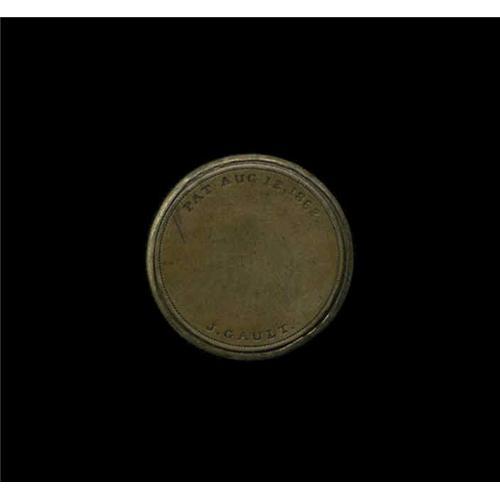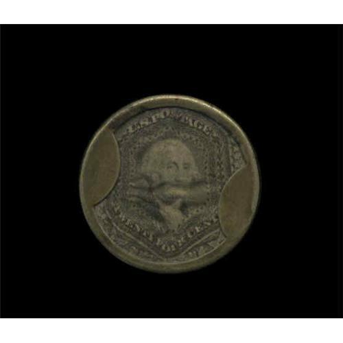 <B>HB-137 EP-167 24¢ J. Gault Extremely Fine.</B></I> Higher denomination Encased Postage from 12¢ to 90¢ needs to be examined very closely as the possibility of pried open cases and replaced stamps is always present. Some pieces are so patently perfect that they are beyond suspicion. Others are easily spotted as fakes due to obvious prying and malformation. The ground between the two extremes is thin ice for any cataloguer, no matter how experienced. This piece rests on such thin ice. The case, while not seriously deformed, has enough marks and irregularities to arouse considerable suspicion. Were it a low denomination piece, it would never be looked at twice, but as a 24¢ caveat emptor is suggested. This cataloger considers himself the best in the business in ferreting out fake and altered Encased Postage, and he leans towards a vote of no confidence regarding this example, but simply is not 100% certain enough to condemn it out of hand. Under these circumstances, we offer this item with a very low estimate and note that this lot is offered without the usual Heritage return privilege.