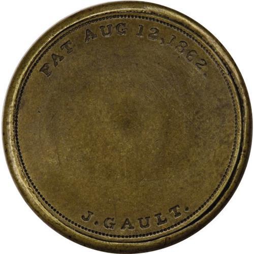<B>HB-139 EP-178 Scott-100 Reed-JG30 30¢ J. Gault Extremely Fine.<BR>Numerical grade: 80case.80stamp.70mica = 230</B></I> Frederick Mayer was very fond of these rare 30¢ pieces, and when genuine, problem free examples became available, he was quick to acquire and keep them. This J. Gault Thirty Cent is a solid, problem free high-end example. The case is flawless for the grade, with a handsome, natural olive-gold tone. The stamp is only a touch down from it full color, and the mica is perfectly clear save for a tiny craze at the top center edge. A premium example of this very scarce denomination.<BR><I>From The Frederick Mayer Collection</B></I><BR><BR><b>Shipping:</b> Coins & Currency (<a target="_blank" href="http://www.heritageauctions.com/common/shipping.php">view shipping information</a>)