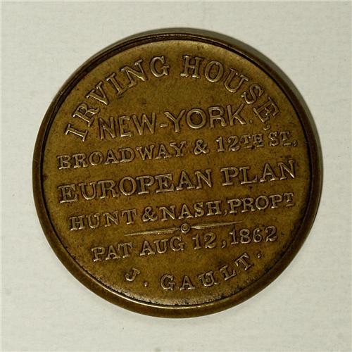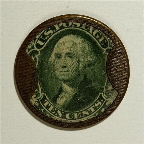<B>HB-154 EP-119 10¢ Irving House Hunt & Nash Ribbed Frame Choice About New.</B></I> Previously Lot 525 from Stack's June 2004 sale. They graded this Extremely Fine, but it is very nearly fully New to our eye. Encased Postage collectors will notice several instances in this sale where we have been one grade below or one grade above the Stack's grade. No one is right or wrong here; grading Encased Postage is inexact at best and everyone has their own opinion. The case is a glossy natural golden-olive. The mica is perfect save for some extremely minor separations, and the stamp is bright and well-centered. A super-quality ribbed frame example.<BR><BR><b>Shipping:</b> Coin/Currency (<a target="_blank" href="http://www.heritageauctions.com/common/shipping.php">view shipping information</a>)