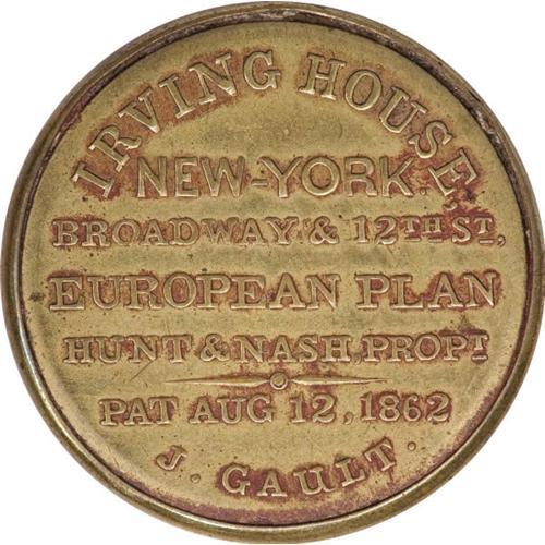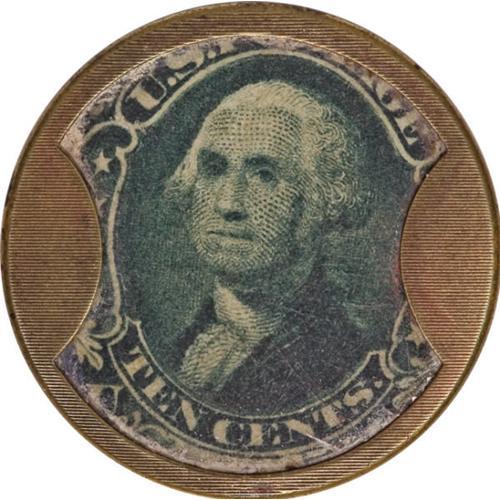 <B>HB-154 EP-119 Scott-109a Reed-IH10RB 10¢ Irving House - Hunt & Nash Ribbed Frame Extremely Fine.<BR>Numerical grade: 65case.75stamp.80mica. = 220</B></I> The final Ten Cent Ribbed Frame Irving House, this one has the upright back, although it is slightly rotated. The case has been cleaned, and some jewelers rouge remains behind the letters. Both the mica and the stamp are nicer than usual.<BR><I>From The Frederick Mayer Collection</B></I><BR><BR><b>Shipping:</b> Coins & Currency (<a target="_blank" href="http://www.heritageauctions.com/common/shipping.php">view shipping information</a>)