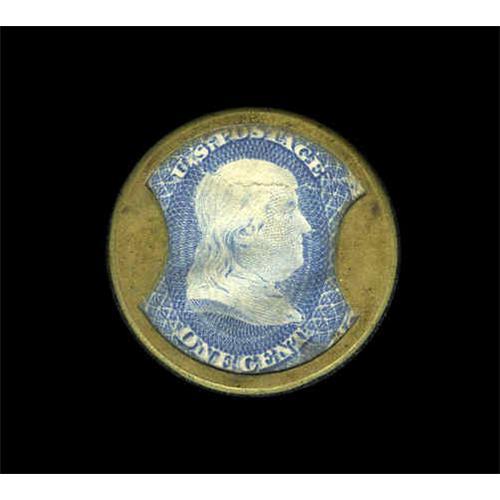 <B>HB-17 EP-3 1¢ Take Ayer's Pills About New.</B></I> The case is an even mahogany brown, with absolutely no problems, the stamp is bright, and the mica is flawless save for the tiniest of marks at the lower right. A very nice piece.