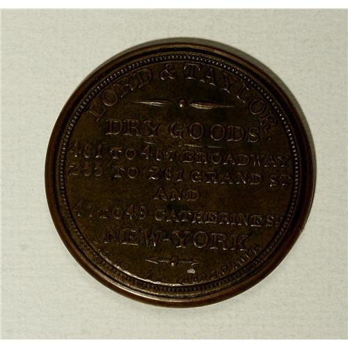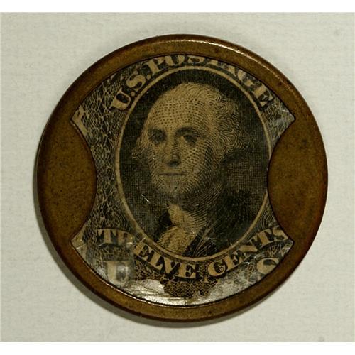 <B>HB-172 EP-153 12¢ Lord & Taylor Very Fine.</B></I> The case on this rare piece is a natural glossy mahogany-toned color, which shows even wear but no problems. The stamp itself is quite bright, and the piece's only problem is the mica which, although clear, has a break at the bottom, exposing a fairly sizeable area of the stamp. A very rare piece, with only about a half-dozen examples in existence. Pedigreed by our consignor to Stack's February 1969 sale.<BR><BR><b>Shipping:</b> Coin/Currency (<a target="_blank" href="http://www.heritageauctions.com/common/shipping.php">view shipping information</a>)