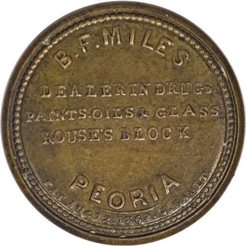 <B>HB-182 EP-22 Scott-134 Reed-MI01 1¢ B. F. Miles Choice About New.<BR>Numerical grade: 85case.90stamp.80mica. = 255</B></I> Miles is considered by many to be the rarest of the Encased Postage issuers. This cataloger feels that Claflin has a very small edge in that department, but Miles is indisputably extremely rare. This One Cent denomination had always been considered unique. In Stack's June 2004 sale, where Mr. Mayer obtained this piece, the cataloger mentions that "a second has been claimed." Fred Reed also states "2 known" in his book. This cataloger has not seen the second piece and is unaware of its whereabouts. Whether unique or one of two, this is an incredibly important piece, as well as one of the finest condition pieces in this collection. Mr. Mayer paid just over $25,000 at the June '04 auction for this piece, and he was justifiably proud of having it in his collection. The case is a high-end About New, with lovely gold and olive brown toning. The stamp is well-centered and 100% fully fresh, and the mica is crystal clear, with just a single meaningless crack at the upper left edge behind Franklin's head. One of the most significant items in this best-ever-formed collection.<BR><I>From The Frederick Mayer Collection</B></I><BR><BR><b>Shipping:</b> Coins & Currency (<a target="_blank" href="http://www.heritageauctions.com/common/shipping.php">view shipping information</a>)