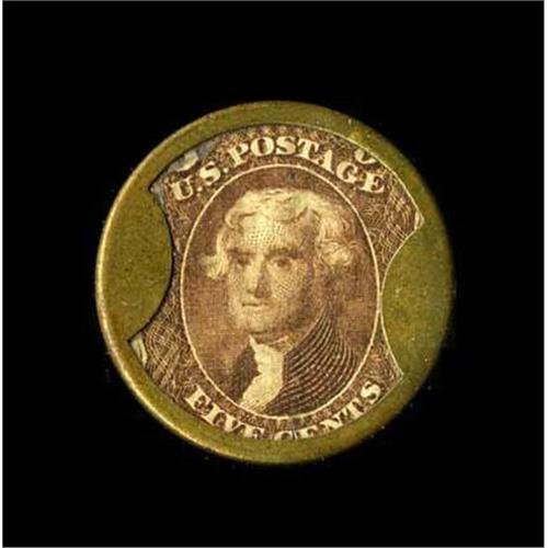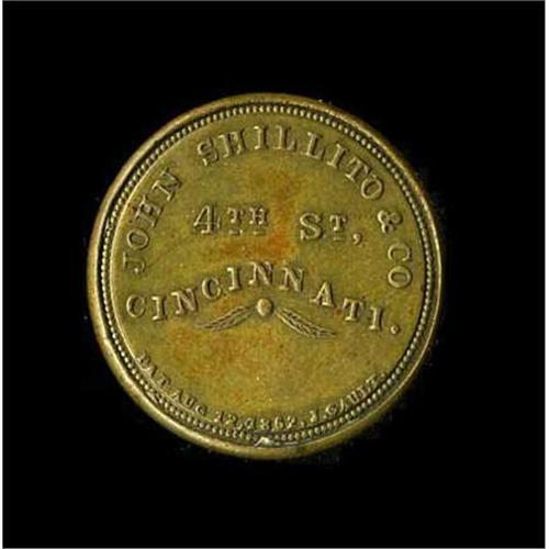 <B>HB-218 EP-92 5¢ John Shillito & Co. Very Fine.</B></I> A surprisingly attractive piece for the grade, with a medium colored brass case, a perfect mica, and a bright stamp. Shillito was one of the two merchants who used encased postage for advertising purposes who is still in business today. It's quite a scarce merchant, with this 5¢ being the most available denomination.<BR><BR><b>Shipping:</b> Coin/Currency (<a target="_blank" href="http://www.heritageauctions.com/common/shipping.php">view shipping information</a>)