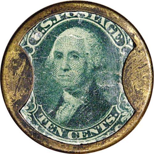 <B>HB-233 EP-133 Scott-177 Reed-WL10 10¢ Weir & Larminie Very Fine.<BR>Numerical grade: 40case.65stamp.65mica. = 170</B></I> This Ten Cent denomination is by far the most common of the Weir and Larminies, although it is still a rather scarce piece. Reed considers it to be an R-5, indicating 21 to 30 known, a number with which we agree. For some reason, many - perhaps most - of these 10¢ Weirs come with varying degrees of corrosion on the cases. This piece is corroded across almost the entire back, although it has done little damage, and the text is totally legible. The stamp is fully fresh but rather wrinkled, and the mica has a large number of minor separations and a few craze marks at its edges.<BR><I>From The Frederick Mayer Collection</B></I><BR><BR><b>Shipping:</b> Coins & Currency (<a target="_blank" href="http://www.heritageauctions.com/common/shipping.php">view shipping information</a>)