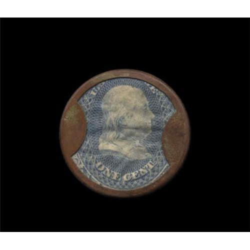 <B>HB-3 EP-2 1c Ayers Cathartic Pills Choice Extremely Fine.</B></I> This Short Arrows One Cent has a simply gorgeous multicolor case that shows virtually no wear at all. The stamp is bright, and the mica very nearly perfect. An ideal piece to represent the 1c denomination.