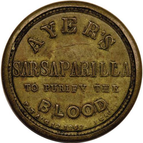 <B>HB-30 EP-34a Scott-15a Reed-AS03MD 3¢ Ayer's Sarsaparilla Medium Ayer's Extremely Fine.</B></I> The case is a perfect XF with good color and no problems of any kind. The stamp, unfortunately, is quite faded. The mica shows just the most minor of crazing at the bottom center. <BR><BR><b>Shipping:</b> Coins & Currency (<a target="_blank" href="http://www.heritageauctions.com/common/shipping.php">view shipping information</a>)