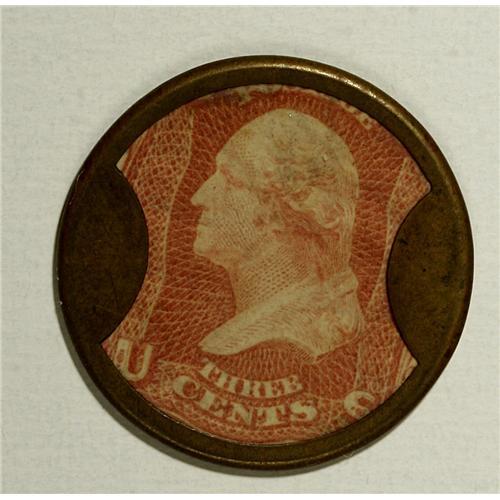 <B>HB-82 EP-40 3¢ Burnett's Standard Cooking Extracts Extremely Fine.</B></I> The case is a glossy medium brown, and it is totally defect free. The stamp is bright and perfectly centered, and the mica is as flawless as any we've seen. A piece of exceptional quality, and an ideal representation of its type.<BR><BR><b>Shipping:</b> Coin/Currency (<a target="_blank" href="http://www.heritageauctions.com/common/shipping.php">view shipping information</a>)
