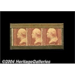 HB-UNL EP95a 9c "Feuchtwanger" Strip Choice About New. Long collected as part of the encased postage series, these 9c pieces were not manufactured by Scovill under Gault's patent. They were most likely produced in New York City for the collector market in the early 1890s. There is no actual connection between this piece and Dr. Feuchtwanger. The name is simple the result of the eagle and snake vignette used on this piece being reminiscent of the 1837 hard times token design, which was a product of Dr. F. In any event, this is one of the nicest example we've had of this type. It is totally free of flaws with a 100% perfect mica and a glossy virtually uncirculated case. <BR><BR><B>Important notice:</B> Heritage usually auctions material at the rate of 200-250 lots per hour. On some occasions eBay Live bid software or the Internet may not be able to keep up with the pace of the auction. We recommend placing a realistic absentee bid now as insurance to avoid disappointment. Occasionally the auctioneer may eliminate or reject an eBay Live bid, and the auctioneer may also reopen a lot after the close of the eBay live bidding (usually because we missed an audience bid), and may reject your bid even if it shows you as the winning bidder. By bidding via eBay Live, you agree that Heritage may award the lot to another bidder at its sole discretion under the circumstances described above or any other reasonable circumstances. Since eBay bids are not shown to us until we open the lot on the floor, we treat those bids just like floor bids. In most cases the floor responds before the eBay bid is presented to us, due to Internet lag time, so for consistency we have made it a policy that floor bids are always considered first over tie eBay live bids. Also please note that all Heritage lots purchased through eBay Live carry a 20% Buyer's Premium. Please make sure you read the Terms and Conditions before you bid. <BR><BR><B>IMPORTANT ANNOUNCEMENT ABOUT RESERVES:</B> Heritage now divulges all reserves on its web site 7 days before every auction. If you want to know whether the reserve on this lot has been met, and if not, what the reserve amount is, please visit this lot page on the HeritageCoin.com web site, or email: bid@HeritageGalleries.com