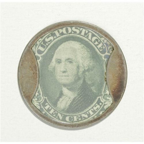 <B>HB-Unlisted EP-Unlisted 10¢ Experimental or Trial Piece Silver Case About New.</B></I> Lot 639 from Stack's sale of the Western Collection in June of 2004. Previously from the FCC Boyd Collection. Stack's description read, in part, "The case is sound, and deeply toned in rich coin silver gray shade. The two-piece case being quite different from the Regular Issue Gault type, not only because it is made apparently in silver, but also because the back has been closed in a different fashion. Unique and unpublished before now." As with the other Experimentals offered here, no one knows their exact origin. This cataloguer has always believed them to be trial pieces or pre-production encasements made for Gault, by either Scoville or another manufacturer that he had been considering for production. In any event, an extraordinarily important rarity.<BR><BR><b>Shipping:</b> Coin/Currency (<a target="_blank" href="http://www.heritageauctions.com/common/shipping.php">view shipping information</a>)