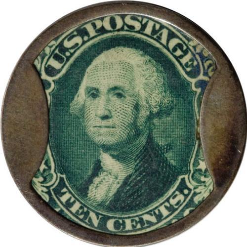 <B>HB-Unlisted EP-Unlisted 10¢ Experimental or Trial Piece Silver Case About New.</B></I> Lot 639 from Stack's sale of the Western Collection in June of 2004. Previously from the FCC Boyd Collection. Stack's description read, in part, "The case is sound, and deeply toned in rich coin silver gray shade. The two-piece case being quite different from the Regular Issue Gault type, not only because it is made apparently in silver, but also because the back has been closed in a different fashion. Unique and unpublished before now." As with the other Experimentals offered here, no one knows their exact origin. This cataloguer has always believed them to be trial pieces or pre-production encasements made for Gault, by either Scoville or another manufacturer that he had been considering for production. In any event, an extraordinarily important rarity.<BR><BR><b>Shipping:</b> Coins & Currency (<a target="_blank" href="http://www.heritageauctions.com/common/shipping.php">view shipping information</a>)