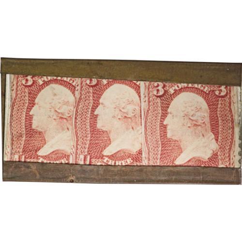 <B>HB-unl EP-95a 9¢ Feuchtwanger Strip About New.<BR>Numerical grade: n/a</B></I> A second of these strips, this one equally nice but with a darker, toned copper case. The mica is perfect, and the three stamps are all fresh. As nice an example of one of these as we have handled.<BR><I>From The Frederick Mayer Collection</B></I><BR><BR><b>Shipping:</b> Coins & Currency (<a target="_blank" href="http://www.heritageauctions.com/common/shipping.php">view shipping information</a>)