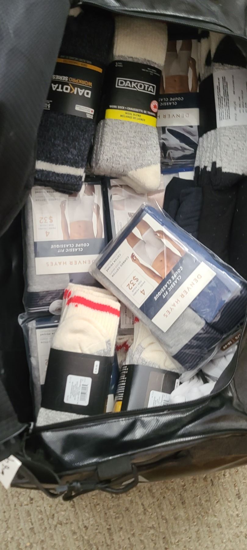 HD WATER PROOF TOTE BAG C/W NEW WORK/ WOOL SOCKS AND UNDERWARE
