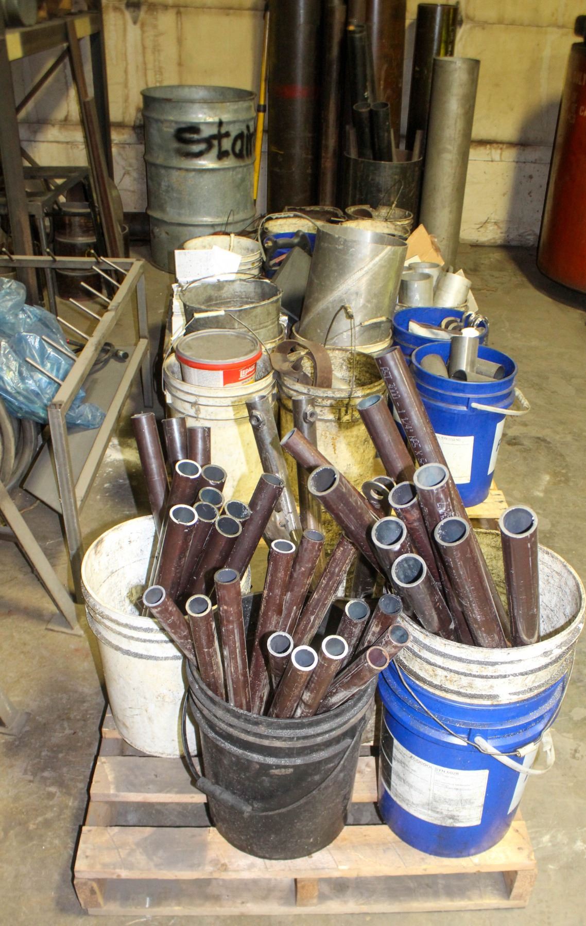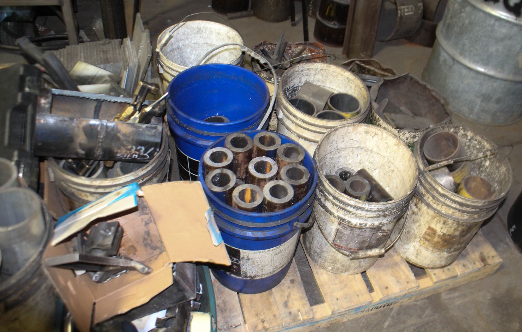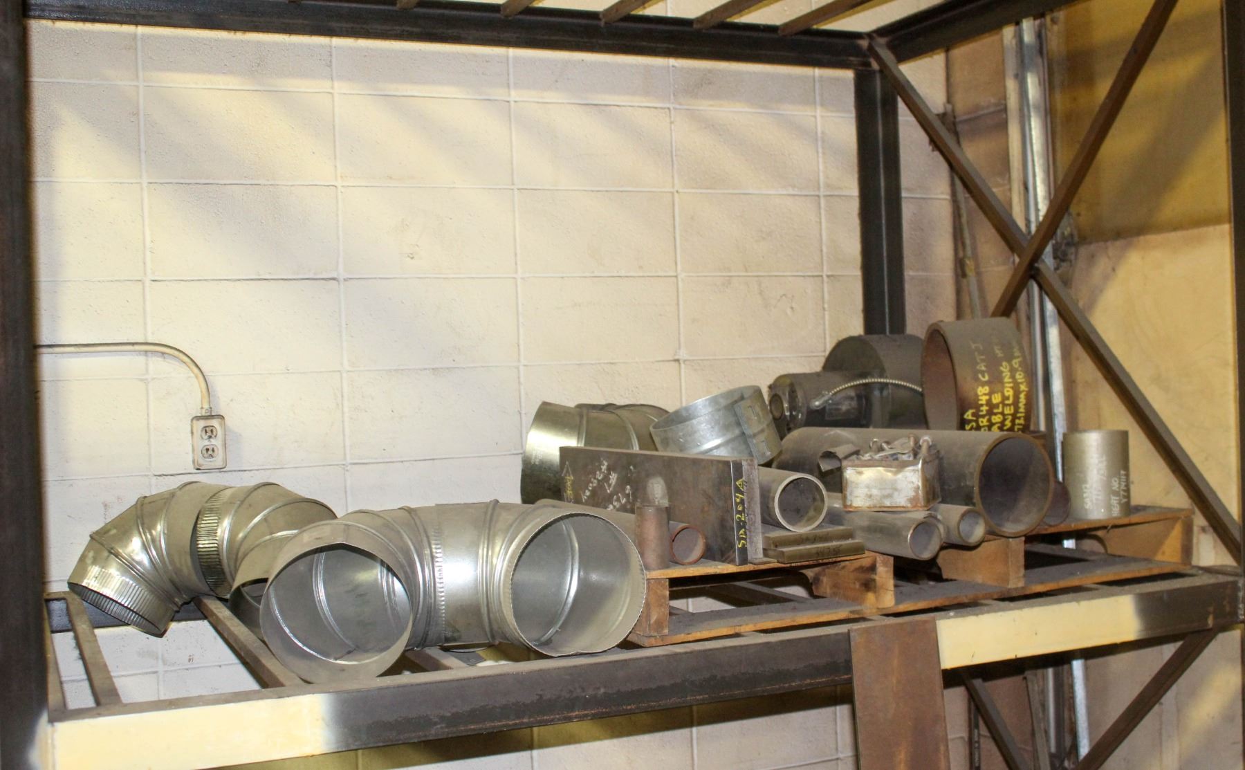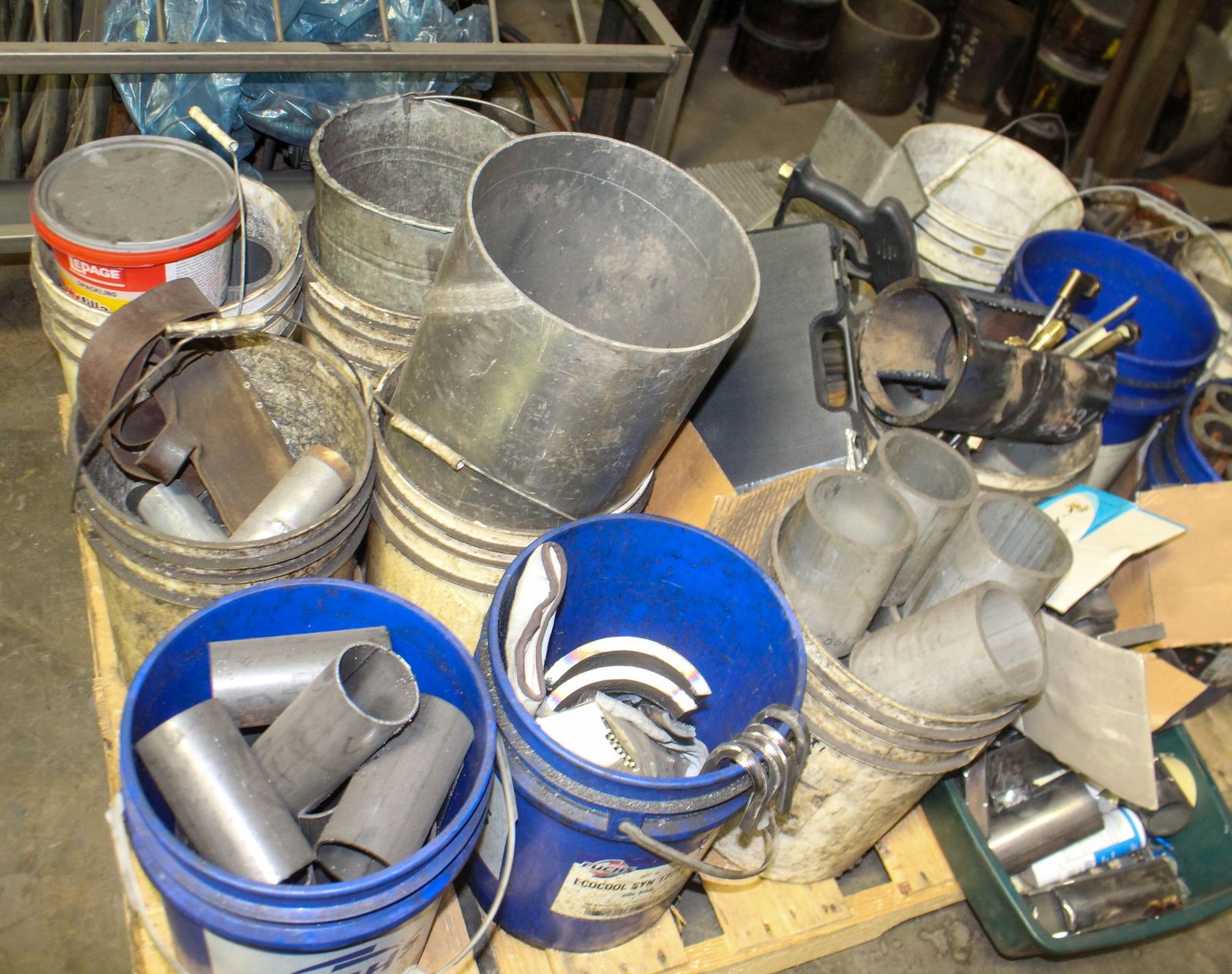 ASSORTED WELDING ACCESSORIES, PALLETS OF SCRAP METAL, COPPER WIRE, DUCTING, ETC. 95" TALL X 241" WIDE X 46.5" DEEP
