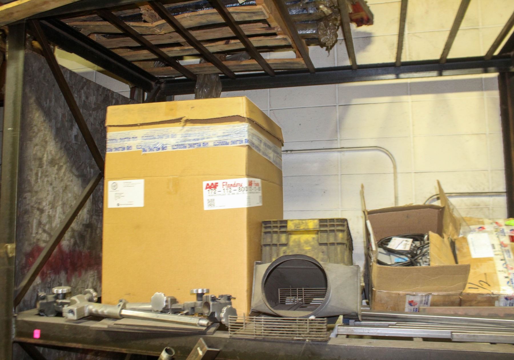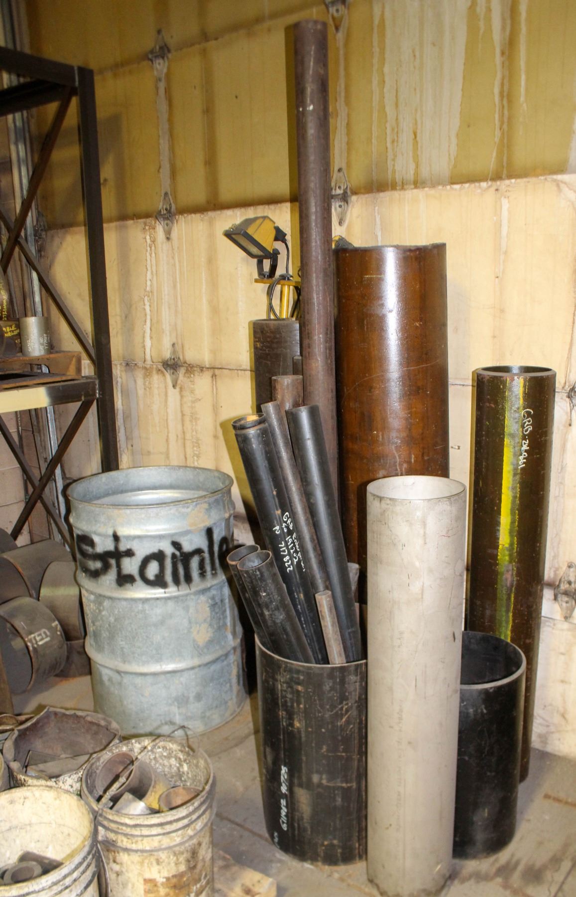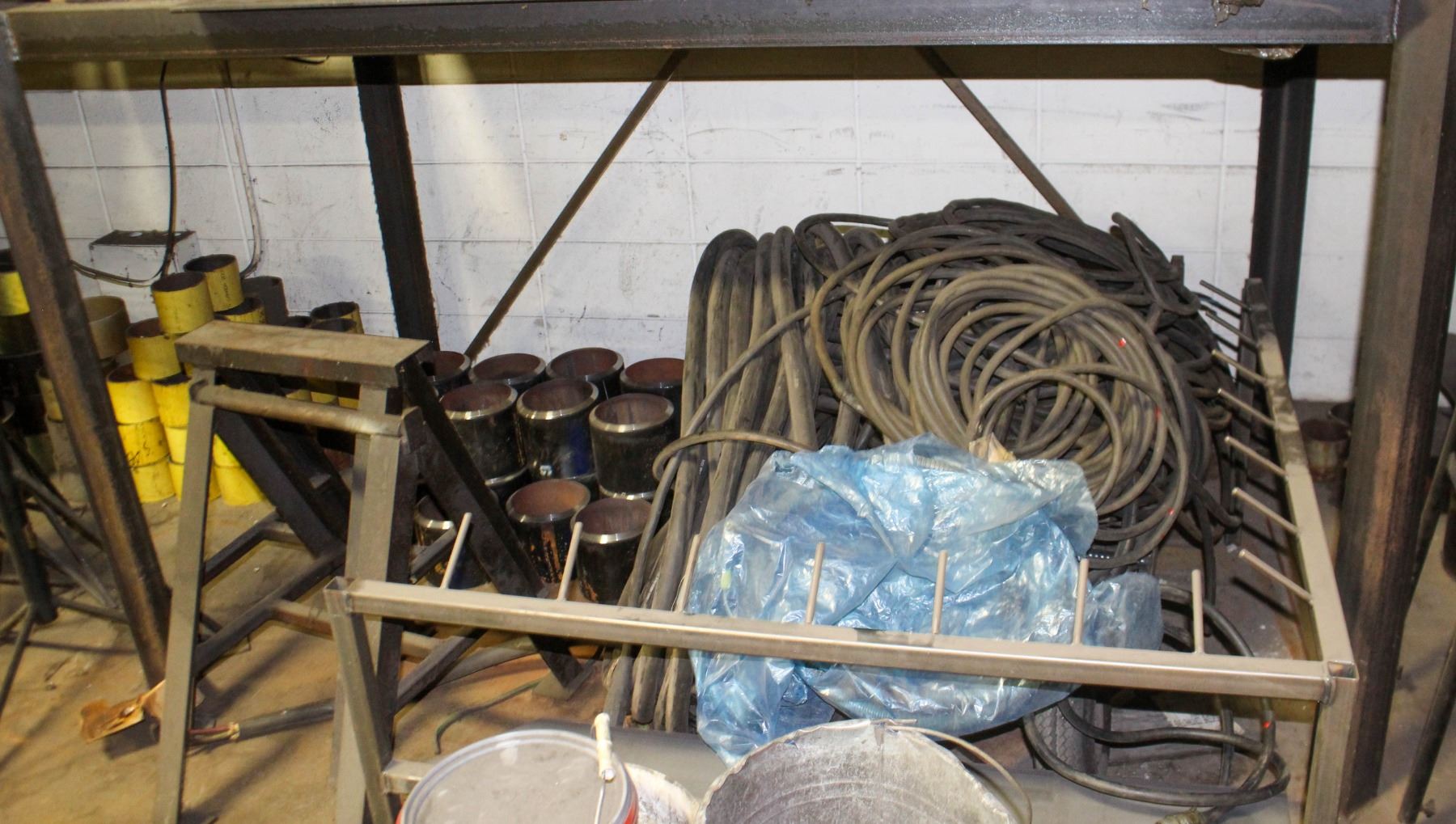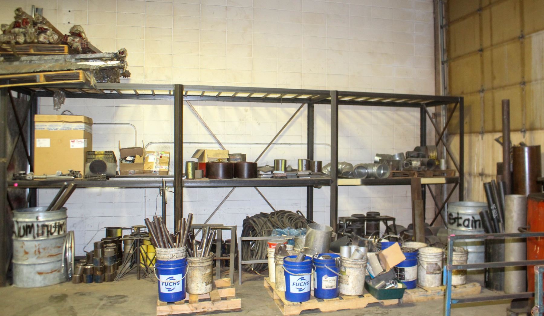 ASSORTED WELDING ACCESSORIES, PALLETS OF SCRAP METAL, COPPER WIRE, DUCTING, ETC. 95" TALL X 241" WIDE X 46.5" DEEP