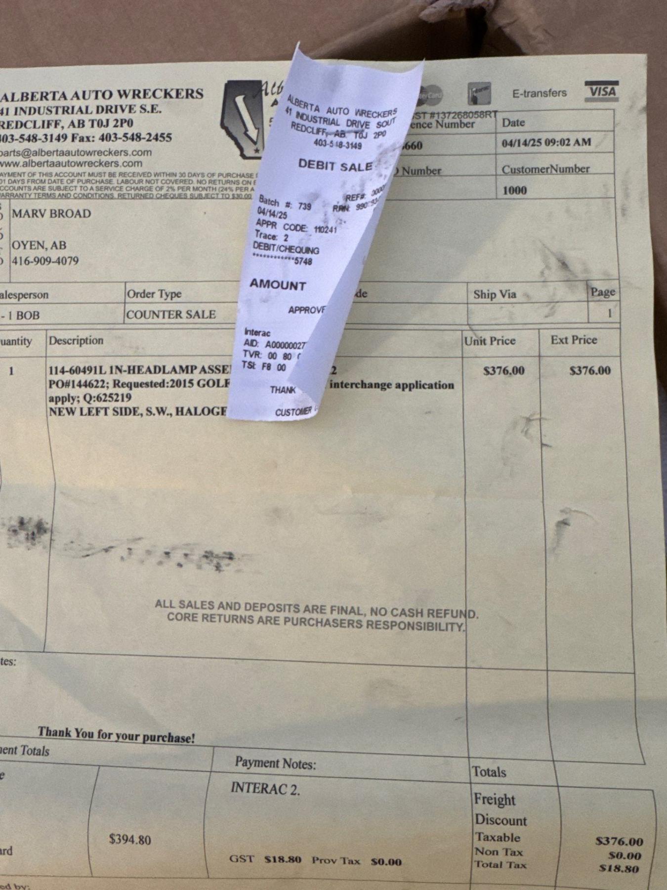 HEADLIGHT 2015 VOLKSWAGON GOLF
