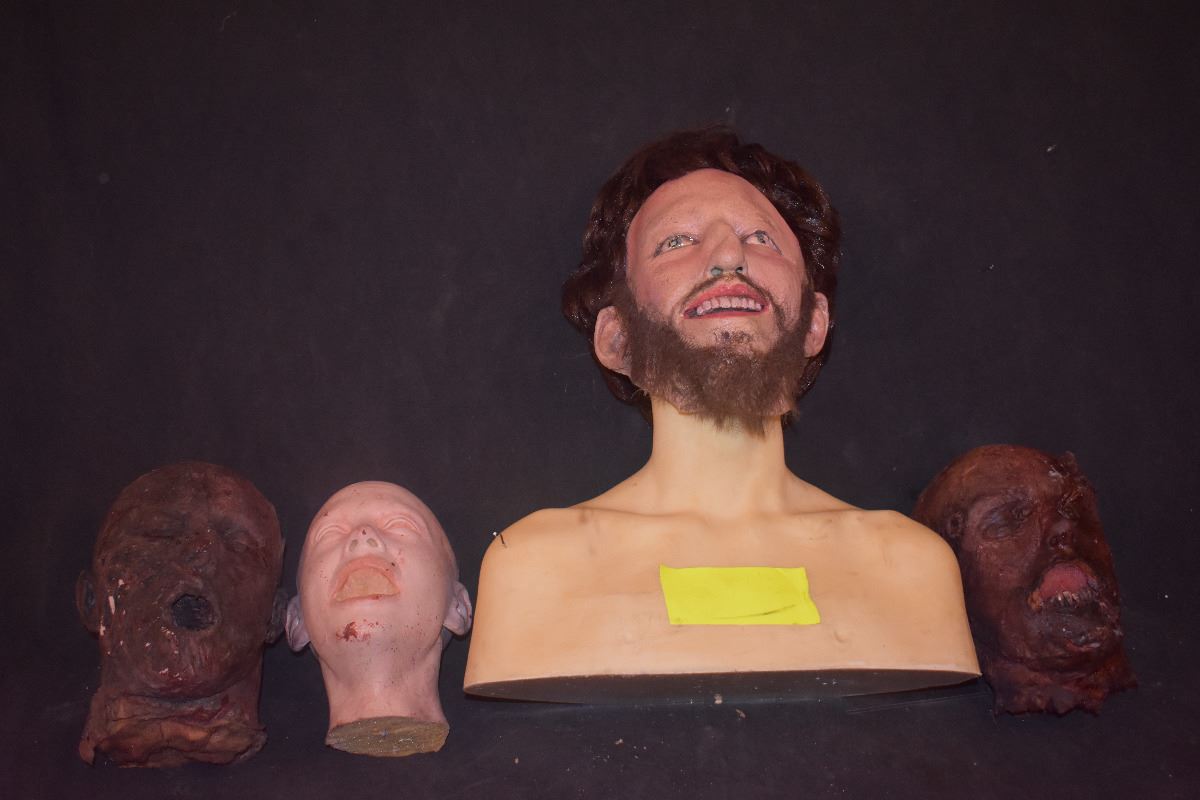 The bust is not included here. I only use it in photo to display the mask. All other heads are solid.