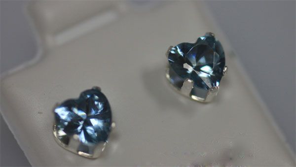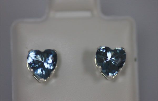 HEART AQUA CZ STUD EARRINGS .925 STERLING SILVER **|**|** HEART AQUA CZ STUD EARRINGS .925 STERLING SILVER ; MSRP: $0